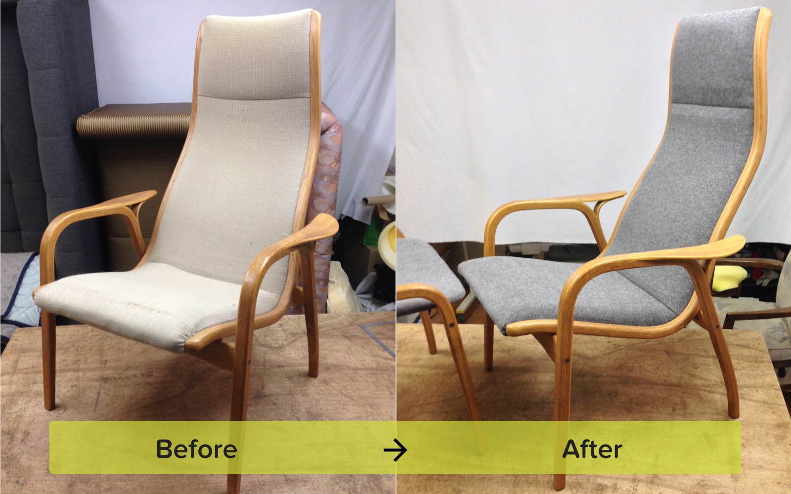 天童木工のイージーチェアの張替え事例をご紹介します